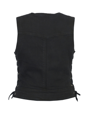 The best biker clothing is attractive and durable. Our women's black denim biker vest can accompany you on ride after ride and maintain its shape and fit. It's made in a short, fitted style that will accentuate your form while you ride. The side-laced vest provides the perfect fit and flexibility.