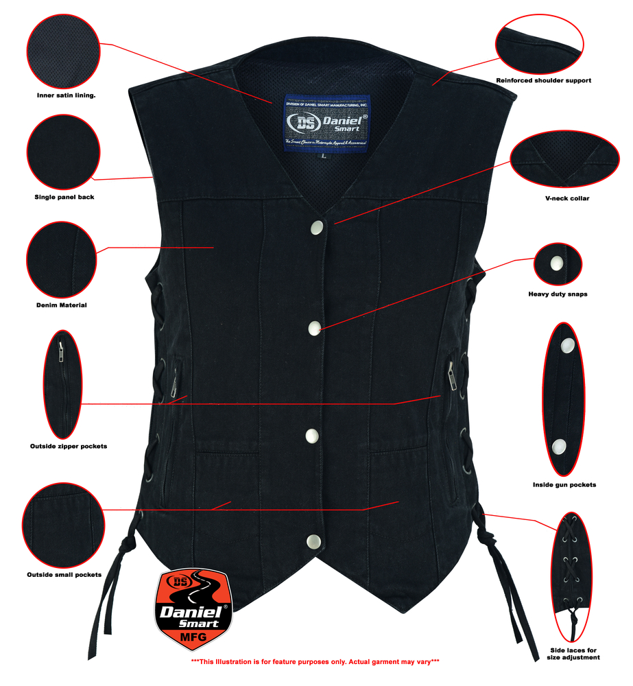DM947 Women's 6 Pocket Denim Utility Vest - Black