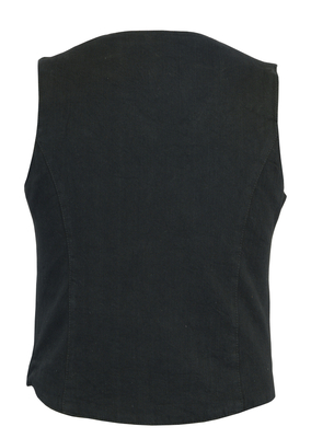 Why choose clothing from Daniel Smart Manufacturing for your next ride? We offer lots of perks, including free shipping on qualifying orders and a simple exchange policy. Place your order for our women's black denim sides motorcycle vest today.