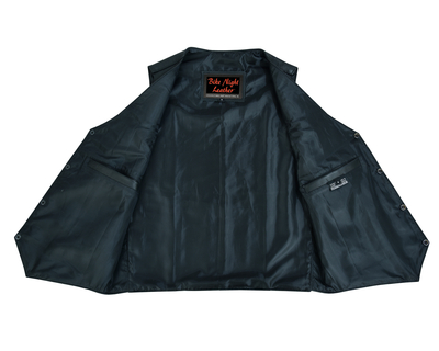 Black leather is a staple of the classic biker look, and leather vests are the perfect combination of protection and comfort. Vests allow for better airflow during warm weather while protecting you from the wind and sun. Our men's plain side black leather biker vest is a staple piece of gear that you can wear for any occasion on and off the bike.