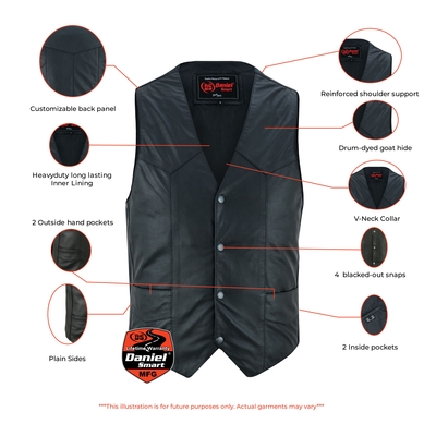 This vest is made from soft, drum-dyed goat hide and fully lined for all-around comfort. The linework and black leather coincide with the traditional biker style. If you want a go-to vest for any occasion, this lightweight option is perfect for you.