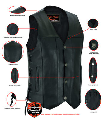 DS142 Men's Single Back Panel Concealed Carry Vest (Buffalo Nickel Head Snaps)