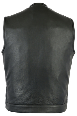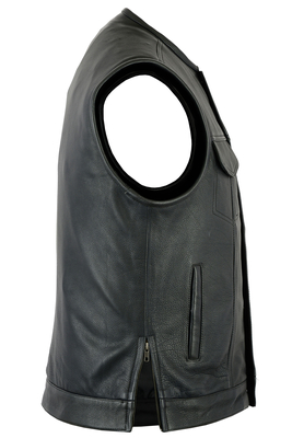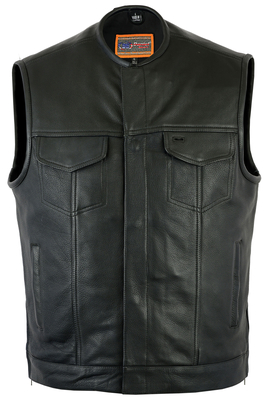 Leather vests offer mobility and security for those who carry guns on the road. Our men's gun pocket vest with bottom side zippers is perfect for bikers who want to conceal carry on or off their bike. Our vests are made of soft, premium drum-dyed milled naked cowhide 1.2 - 1.3mm for comfort and durability.