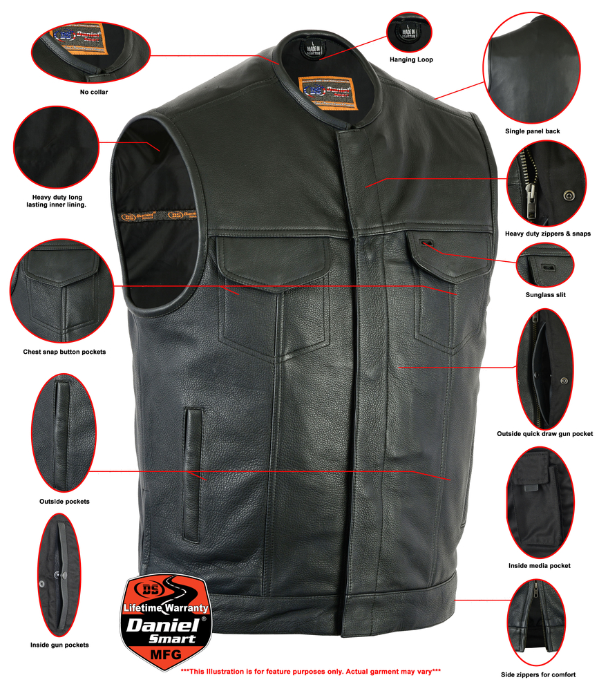 Order your men's gun pocket biker vest with bottom side zippers today. We offer free shipping on qualifying orders, as well as a 30-day money-back guarantee, and an easy returns process. We also back our quality with free lifetime warranties on all products. Order today!
