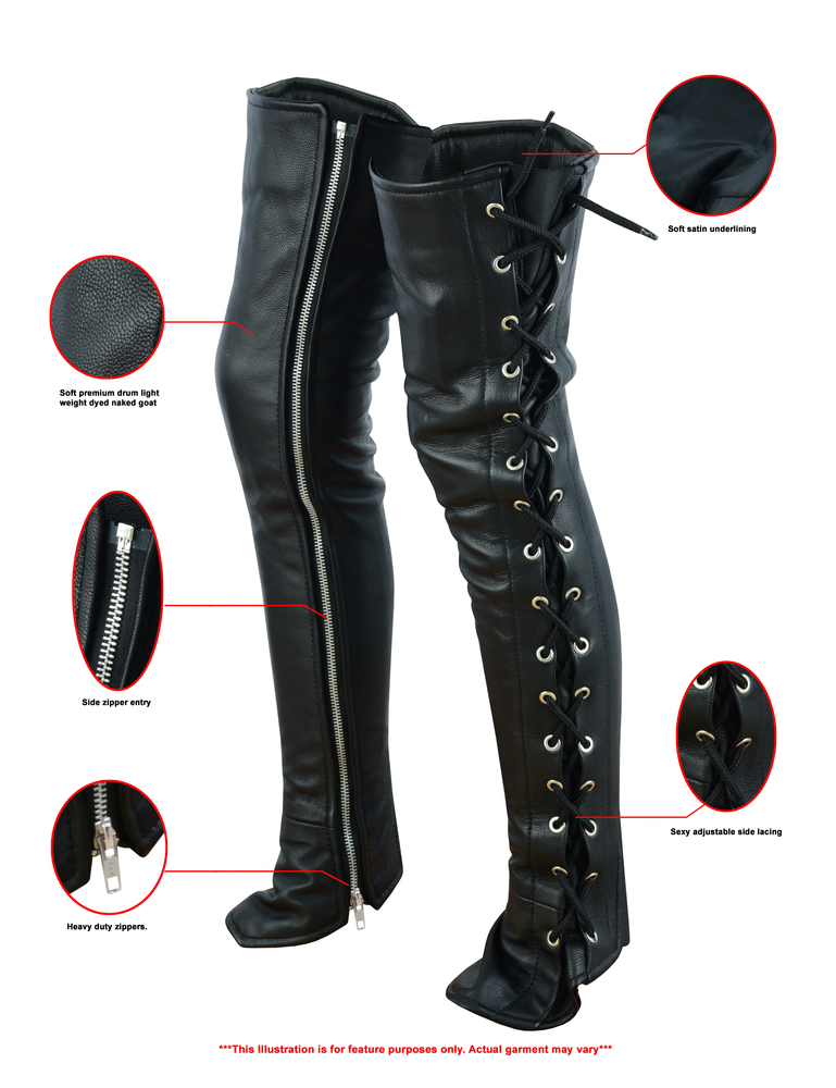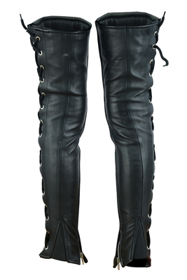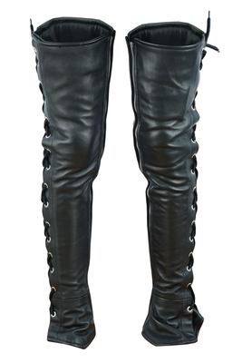 DS422 Women's Black Thigh High Leather Side Lace Leggings