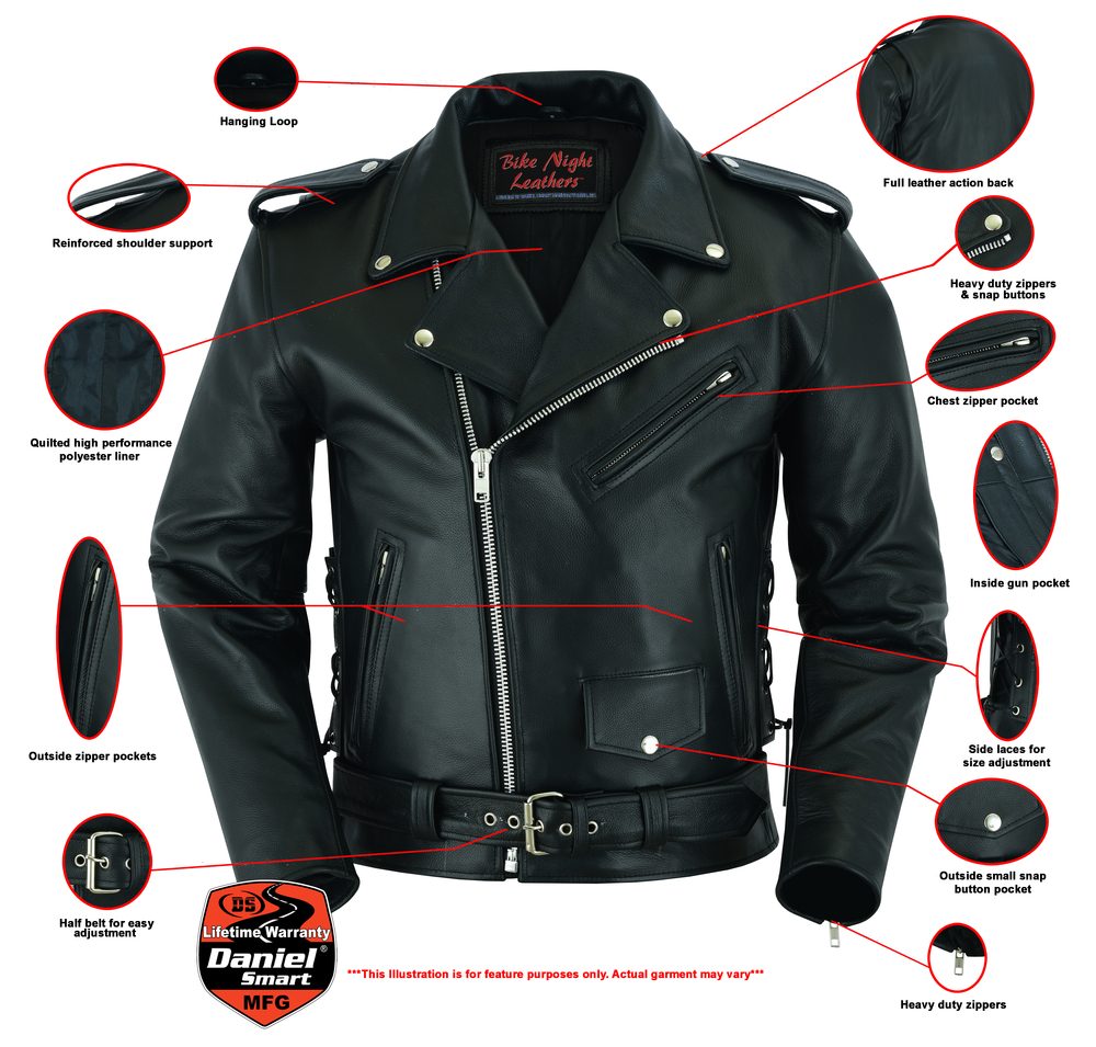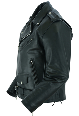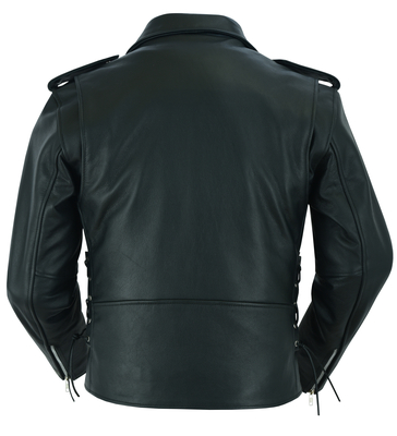 DS711 Economy Motorcycle Classic Biker Leather Jacket - Side Laces