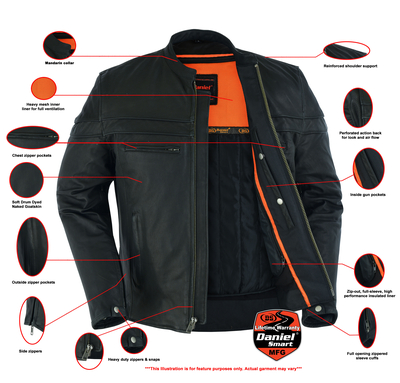 DS768 Men's Sporty Lightweight Leather Cross Over Jacket