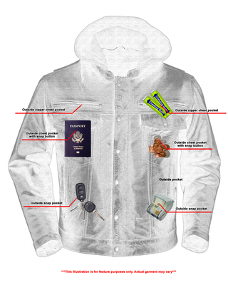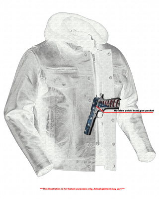 2 upgraded style concealed gun pockets between the snap and the zipper made of special heavy-duty textile with built-in holsters and snap closure.