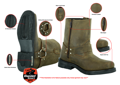 - Men's 7" Harness Motorcycle Boots with Zipper