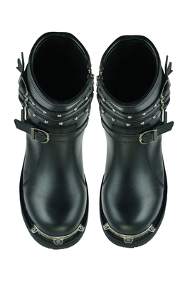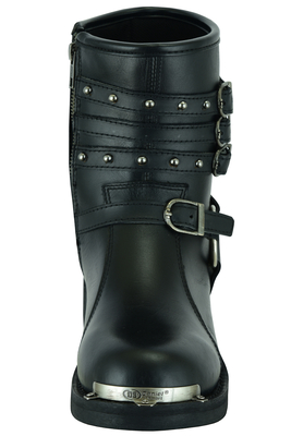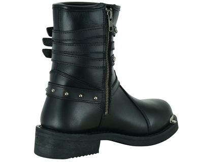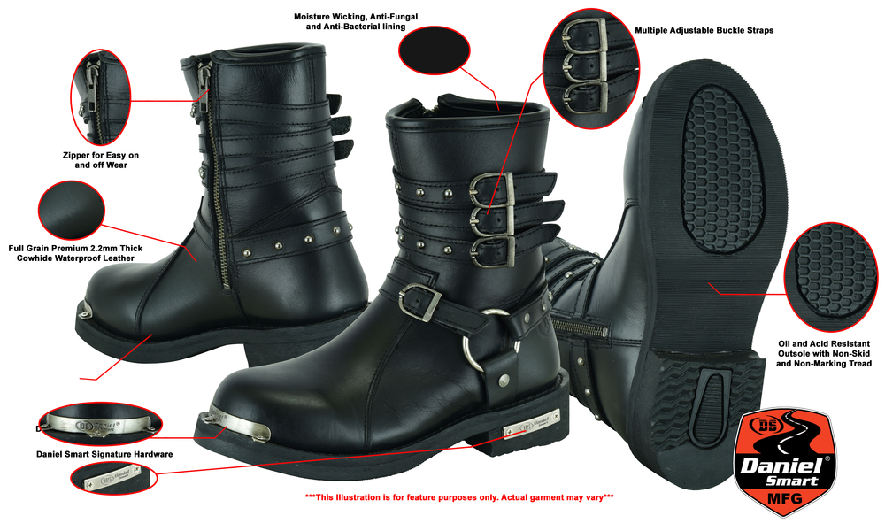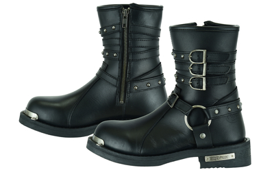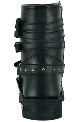 DS9767 Women’s 9 Inch Black Triple Buckle Leather Harness Boot