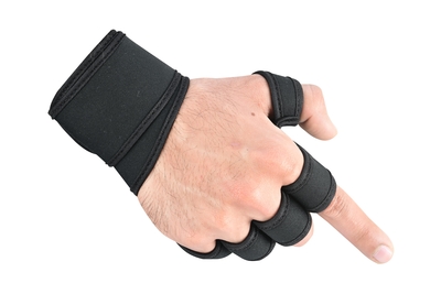 Padded palm for extra grip on gym apparatus while protecting your hands.